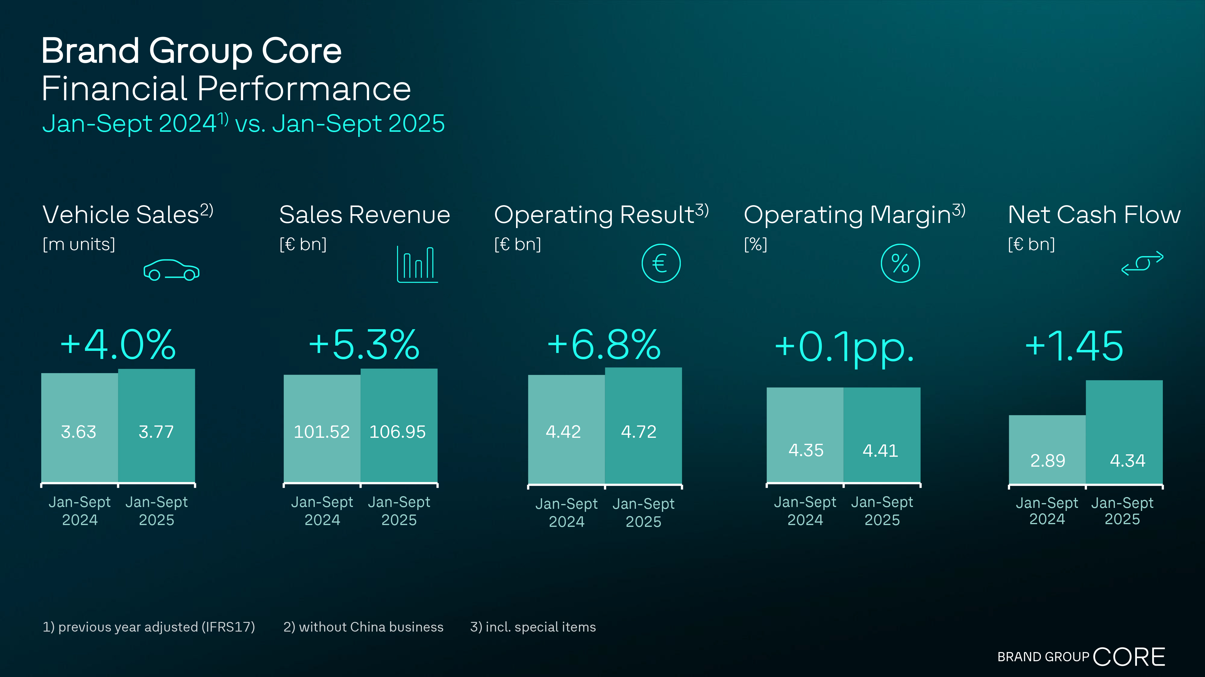 “Even in the traditionally challenging third quarter, when the plant vacation season has a pronounced effect, the strength of the Brand Group Core has been evident. In the first nine months of the year, we significantly improved vehicle sales, sales revenue and the operating result.